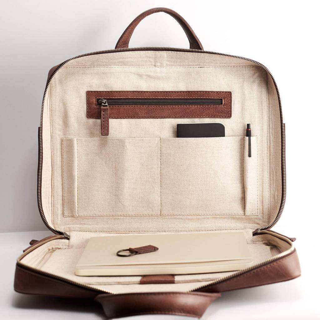 Deze prachtige Roko laptoptas van Capra Leather is qua design net wat anders als al die andere laptoptassen. Alle laptoptassen van Capra Leather worden met de hand gemaakt in hun atelier in Bogota Colombia. Voor de vervaardiging wordt alleen gebruik gemaakt van de beste materialen, zoals full grain leer, linnen en katoen voor de voering, YKK ritsen en Italiaans gewaxt draad. Naast dat de laptoptas er mooi uit ziet, beschikt deze ook over veel handige opties waardoor hij erg fijn in gebruik is. Een slimme keuze voor wie met net een andere laptoptas wilt lopen dan de rest.