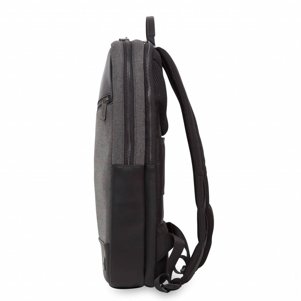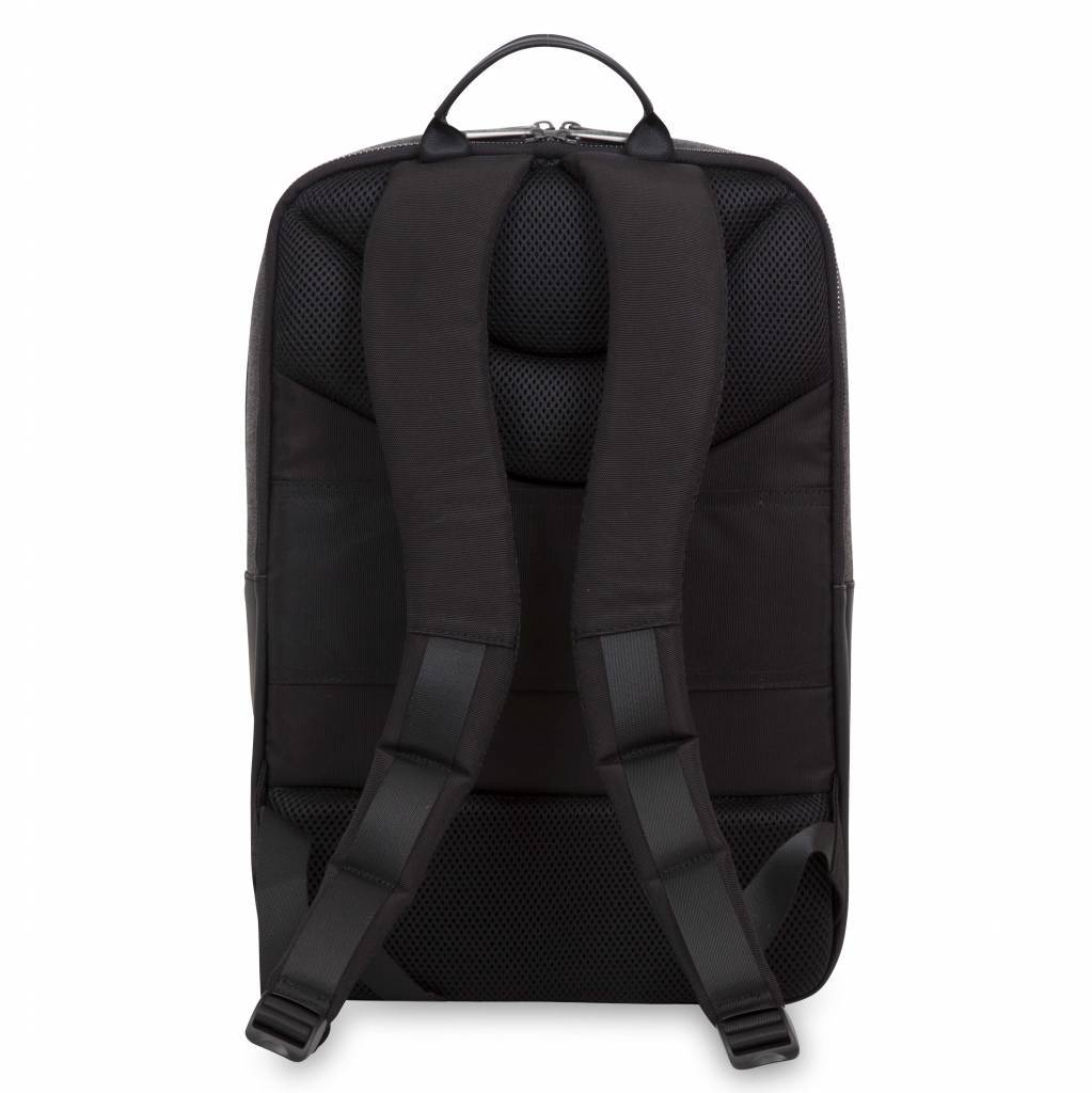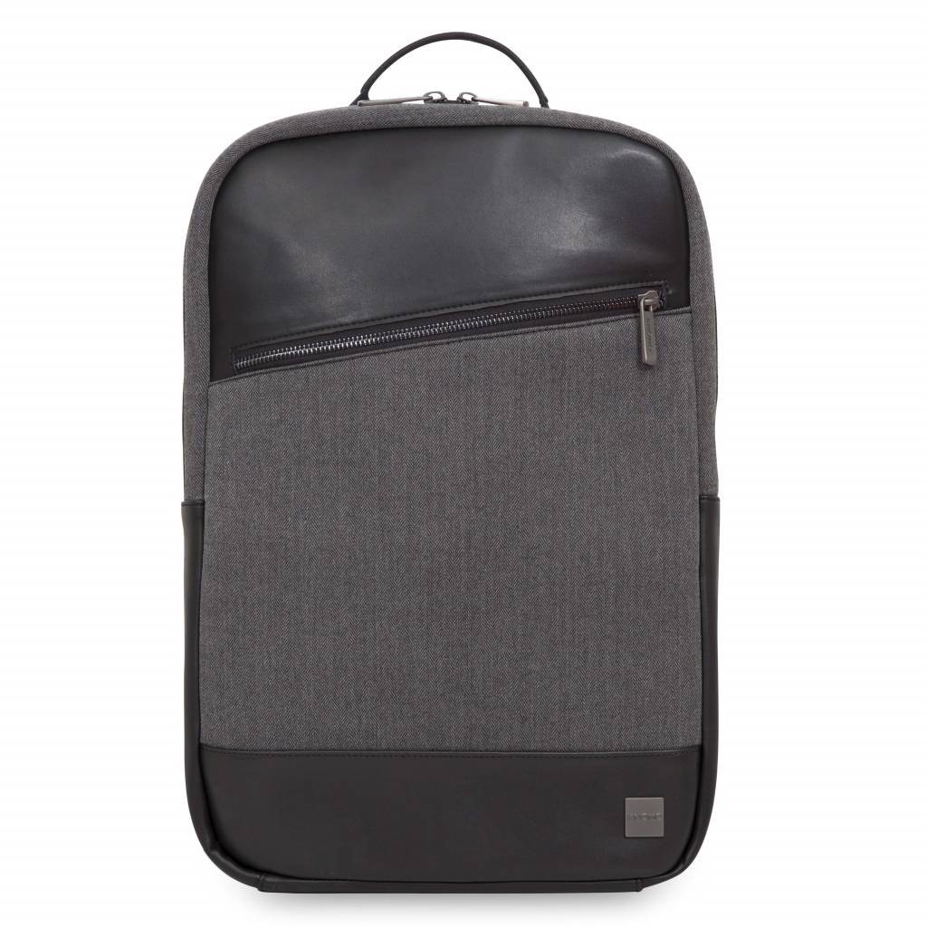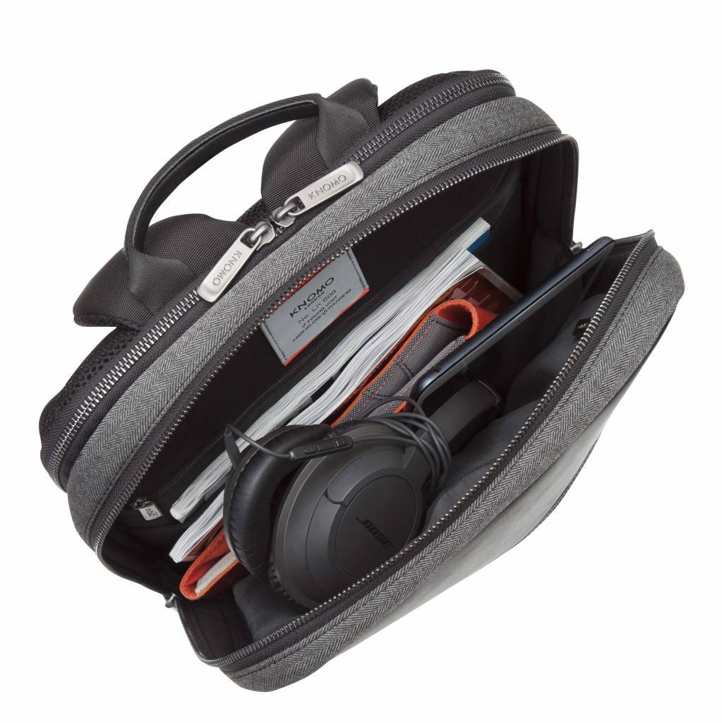 De Knomo Southampton 15 inch rugzak is een lichtgewicht rugzak voor je MacBook. In deze Knomo rugzak kun je elke MacBook tot 15,4 inch kwijt. De Knomo Southampton backpack is gemaakt van duurzaam polyester in een visgraat motief - wat er natuurlijk ook mooi uit ziet. - gecombineerd met leer. Qua inhoud heeft de Knomo Southampton rugzak twee ritsen: een voor het vak voor je MacBook en daarvoor een vak met diverse vakjes die je kunt afsluiten met een rits voor de rest van je spullen, kabels, opladers en dergelijk. Ook op de voorkant zit een ritsvak met ruimte voor bijvoorbeeld je knip of iPhone. Een goede rugzak geeft goede steun en ook een prettig comfort: dat zal bij de Knomo niet anders zijn. Door de brede gepadde schouderbanden zit de tas goed op je rug gecombineerd met de Air Mesh achterkant. Naast schouderbanden heeft deze tas ook een handvat voor als je ‘m in de hand wilt dragen.