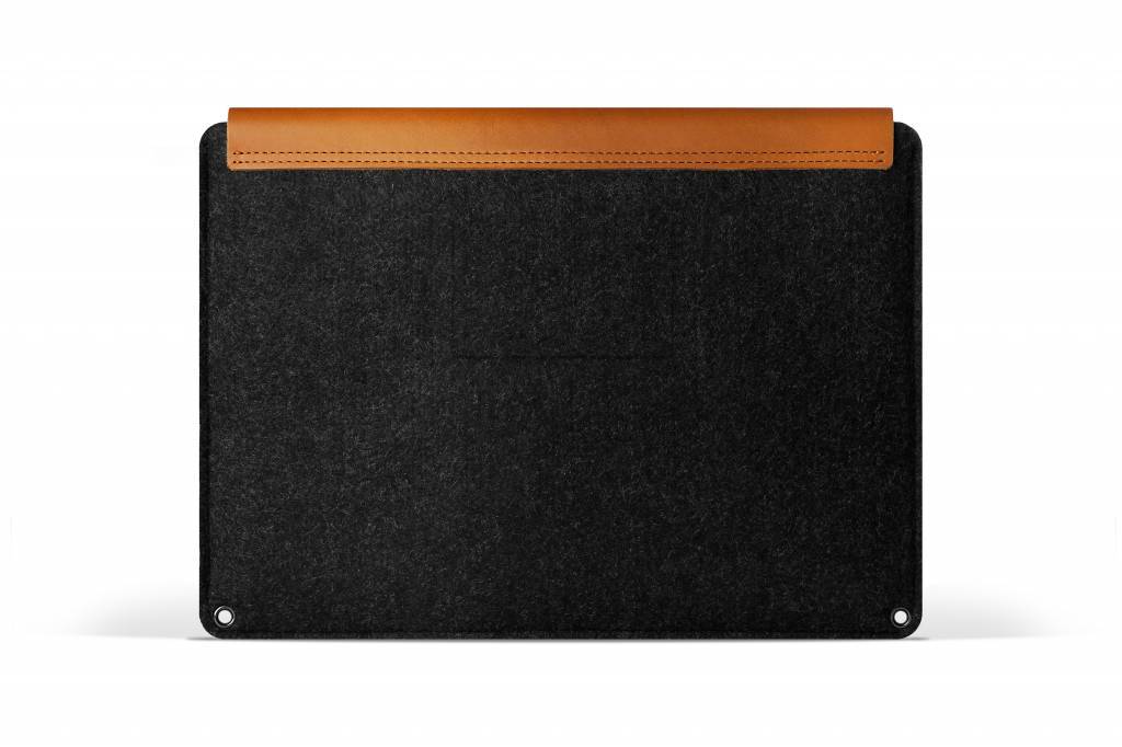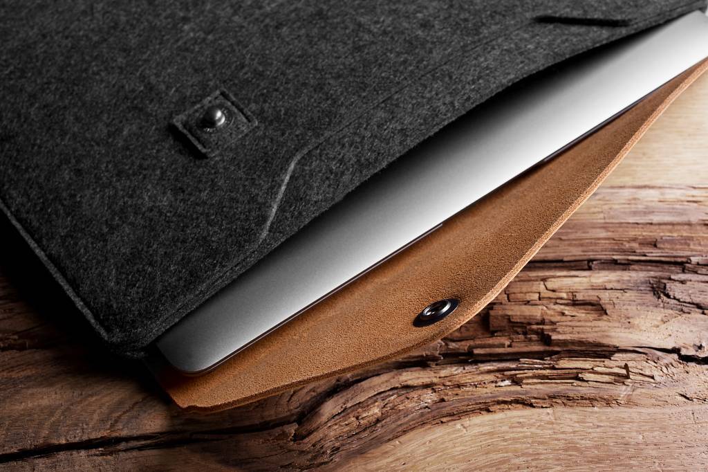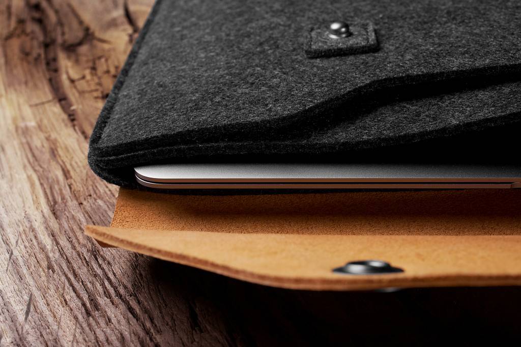 Deze 12" MacBook Sleeve van Mujjo is gemaakt van een unieke combinatie van 'full-grain vegetable-tanned' leer en wol-vilt. De sleeve heeft een uitgebalanceerd ontwerp met een bewust asymmetrische leren klep. Het ontwerp kenmerkt zich door strakke lijnen en zichtbaar gebruik van premium materialen. De leren klep met een drukknoop aan de rechterkant maakt het sluiten makkelijk en houdt uw apparaat veilig. De klinknagels zitten op de voering, zodat uw Macbook alleen zacht, dik vilt raakt. Aan de binnenkant zit een geintegreerd vak voor je dagelijkse spullen zoals enkele documenten, oordopjes of pennen. Ook is er een vakje toegevoegd in de hoes waar je je creditcard, pinpas en SD-kaart kunt opbergen. Het premium leer krijgt een erg mooie 'patina' na verloop van tijd, een mooie eigenschap wat de sleeve karakter geeft. Het vilt biedt je MacBook een comfortabele en veilige plek om in opgeborgen te worden. Vilt is een erg duurzame en stevige stof welke toch zacht aanvoelt. Vilt is makkelijk te reinigen en door een speciale behandeling is hij water afstotend. Al met al een prachtige premium sleeve voor je MacBook, die nog mooier wordt door hem simpel weg te gebruiken.