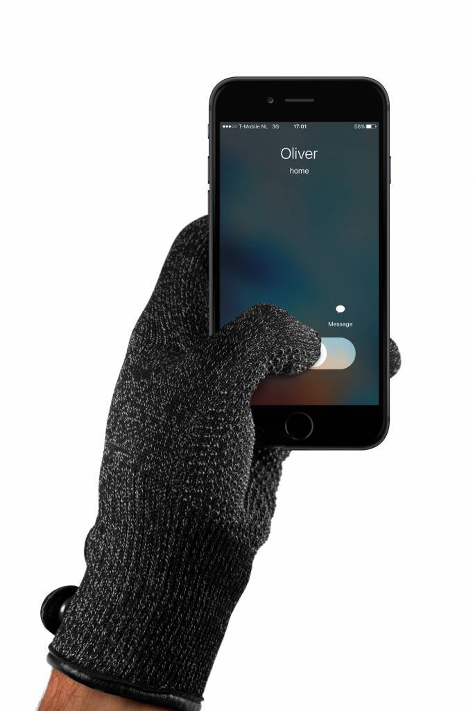 Deze Single-Layered Touchscreen handschoenen zijn speciaal ontworpen zodat je zonder koude handen te krijgen je iPhone, Galaxy of andere smartphone of tablet kunt bedienen. De handschoenen zijn prachtig vormgegeven, waarbij gebruik is gemaakt van uitlstuitend premium materialen. Het lederen bandje bij de pols is voorzien van een magnetische sluiting en is net als de leren rand rondom de pols in bijpassend zwart. In de handpalm is een patroon van kleine siliconen balletjes verwerkt, wat veel extra grip geeft. De Single-Layered Touchscreen handschoenen zijn voorzien van een geintegreerde zachte fleece laag, welke de handschoenen nog comfortabeler en duurzamer maken. Hoe werk het? Om de handschoenen 'competible' met touchscreens te maken zijn er hoge kwaliteit silver coated nylon vesels in de stof verwerkt. Hierdoor reageert het scherm op aanraking van de handschoenen.