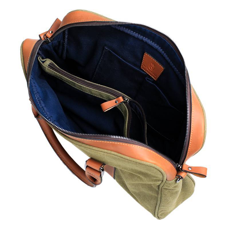Op zoek naar een tas om mee te nemen naar je werk, mét representatieve uitstraling? Zakelijk, maar niet te netjes? Look no further, dit is de Ace canvas/leren laptoptas. Een sportieve laptoptas, zowel stijlvol als functioneel. Hang hem gerust aan je stuur terwijl je door de regen naar je werk fietst. Het stevige premium canvas is namelijk waterafstotend en houdt al jouw waardevolle spullen droog. De leren details geven ‘m een stoere look en zorgen voor extra stevigheid. Het leer wordt alleen maar mooier naarmate je de tas gebruikt. Organiseer al je items overzichtelijk in de praktische opbergvakken en twee grote compartimenten. De tas is met de hand gemaakt.