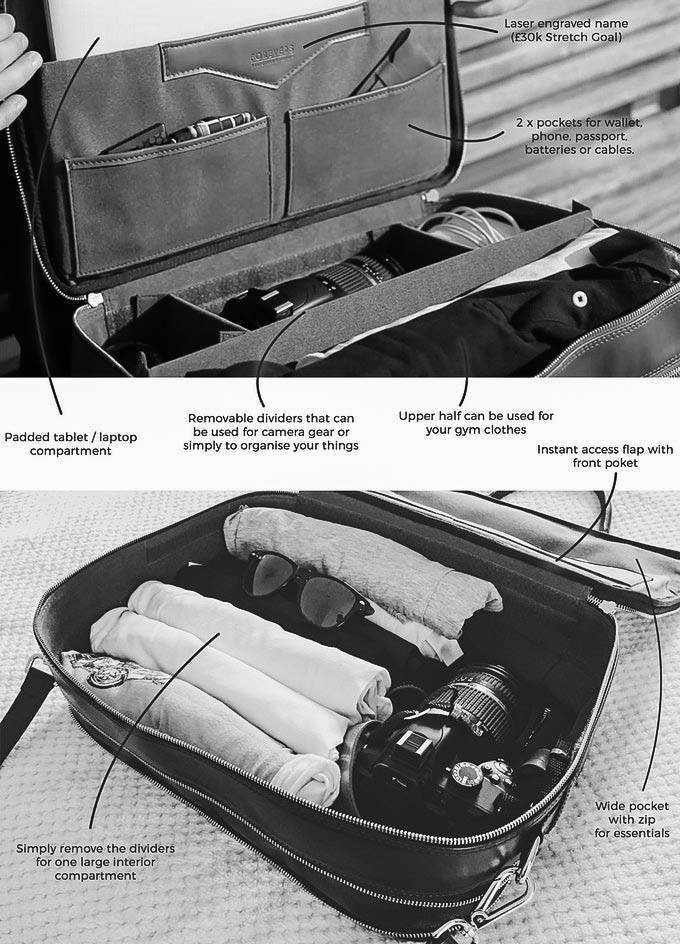 - Verschillende vakken voor je laptop, accessoires, camera spullen & kleding
