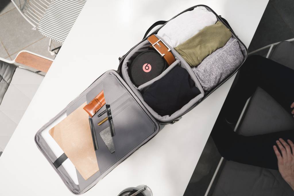 - Verschillende vakken voor je laptop, accessoires, camera spullen & kleding