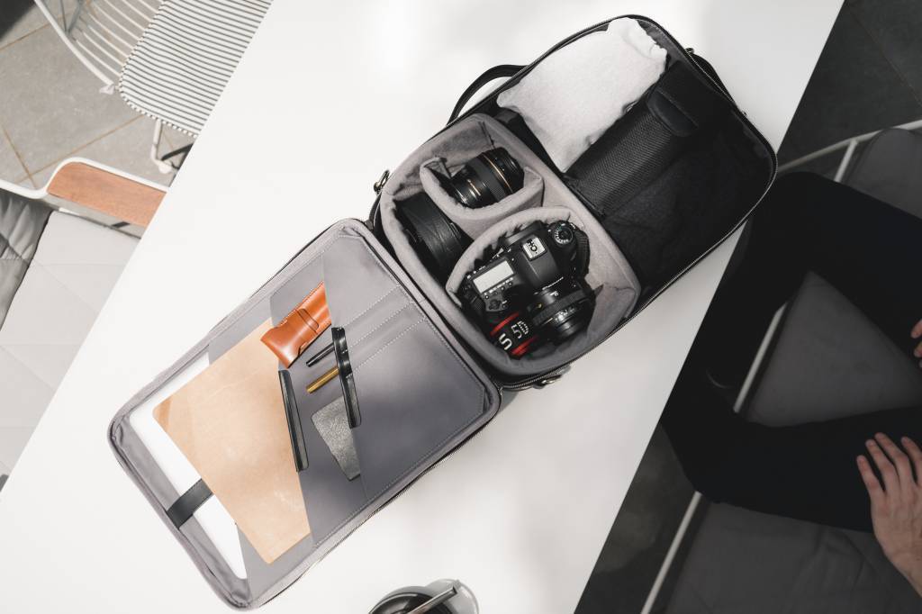 - Verschillende vakken voor je laptop, accessoires, camera spullen & kleding