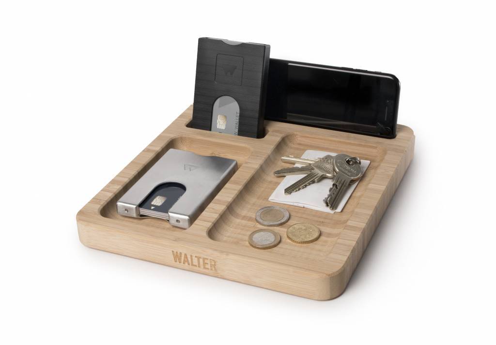 Het Bamboo Dock is een mooie en handige organiser voor je dagelijkse essentials. Het biedt ruimte voor je sleutels, mobiele telefoon, bonnetjes, etc. en natuurlijk je Walter Wallets!